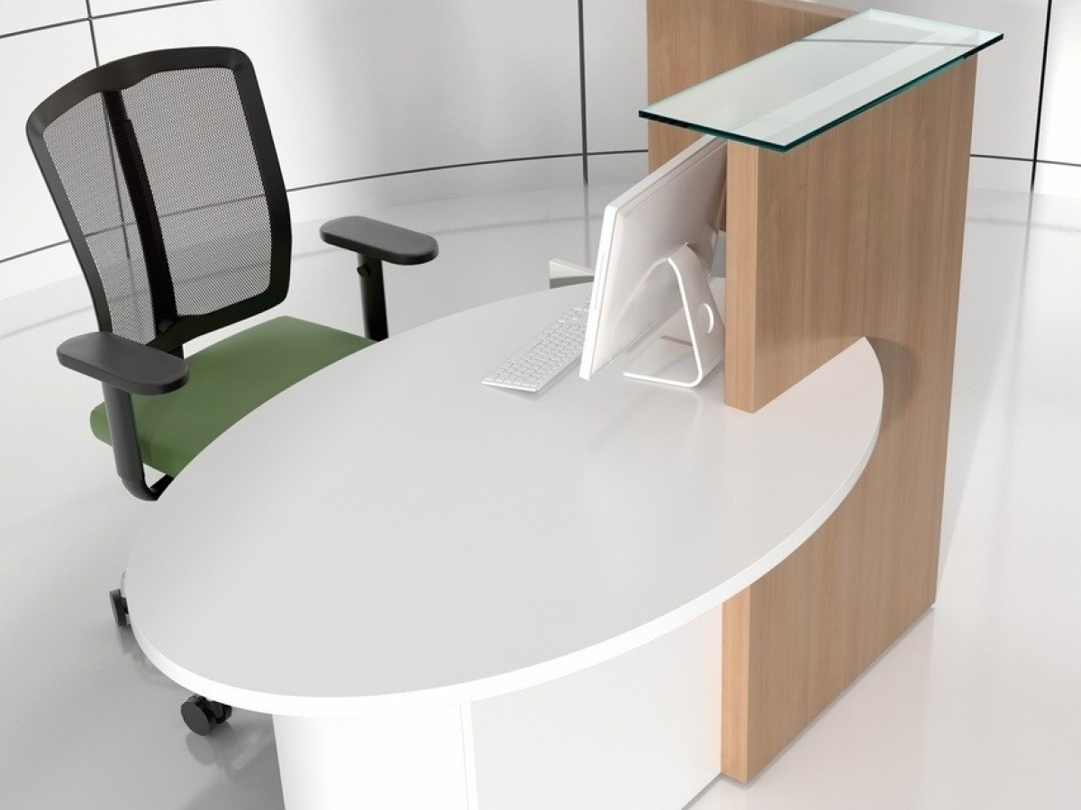 Gamme Ovo | Banque d'accueil au format mini - Mini banque d'accueil avec un plateau ovale avec un top sur le coté gauche ou droite. Idéal pour les espaces restreints, les zones encombrées ou les halls d'accueil ayant besoin de plusieurs postes de réception distincts. - Descriptif technique de