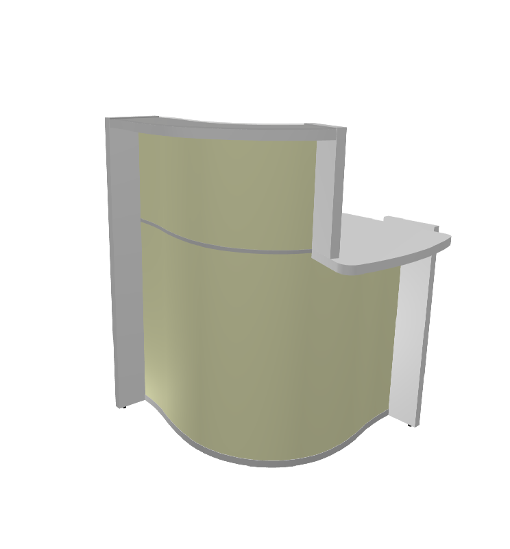 La façade de la banque d'accueil compacte Wave est réalisée en stratifié brillant ou mat suivant les teintes, à découvrir dans le configurateur.