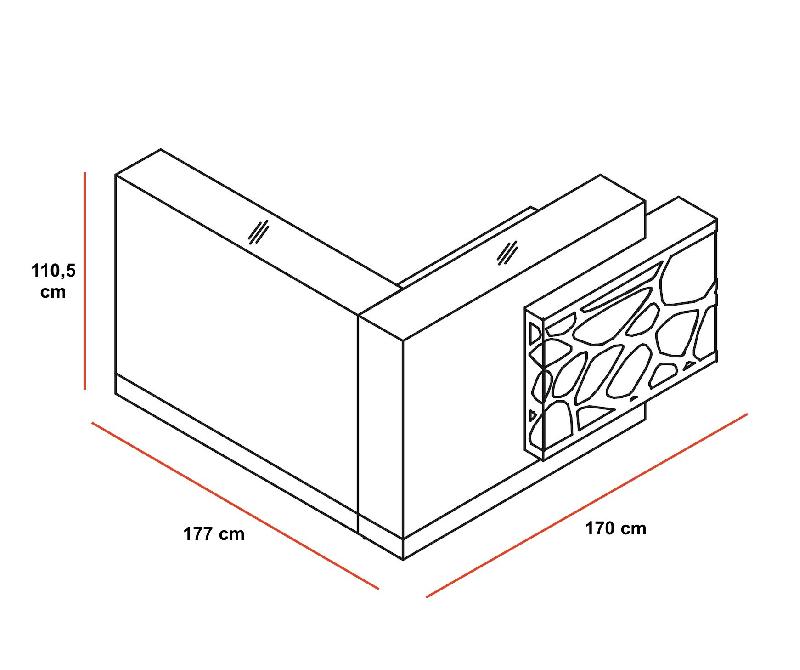 - Retour: à droite ou à gauche de 177 cm, disponible également en 137 cm, consultez-nous.