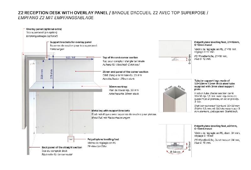 La banque d'accueil Z2 d'Officity allie esthétique moderne et durabilité, offrant une première impression élégante dans divers environnements. Modulable et personnalisable, elle s'adapte à tout espace professionnel, offrant une solution sur mesure pour les zones d'accueil. Conçue pour l'accessibilité, elle intègre un plan de travail PMR et des options de gestion de câbles pour un confort optimal.