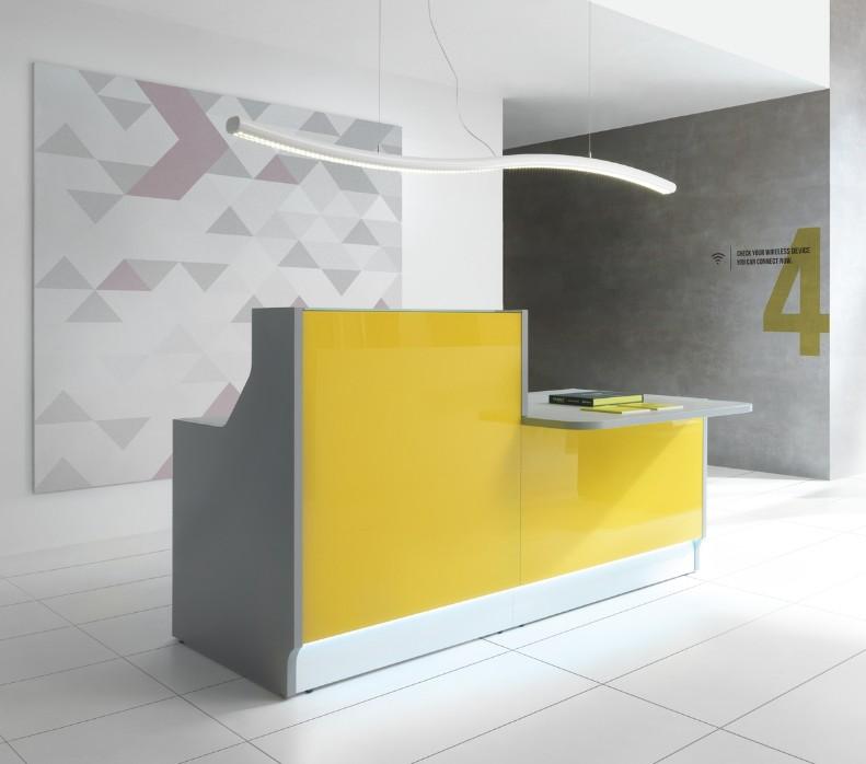 Banque d'accueil droite de couleur Linea avec accès PMR. - 165, Jaune brillant, Droite, Sans -