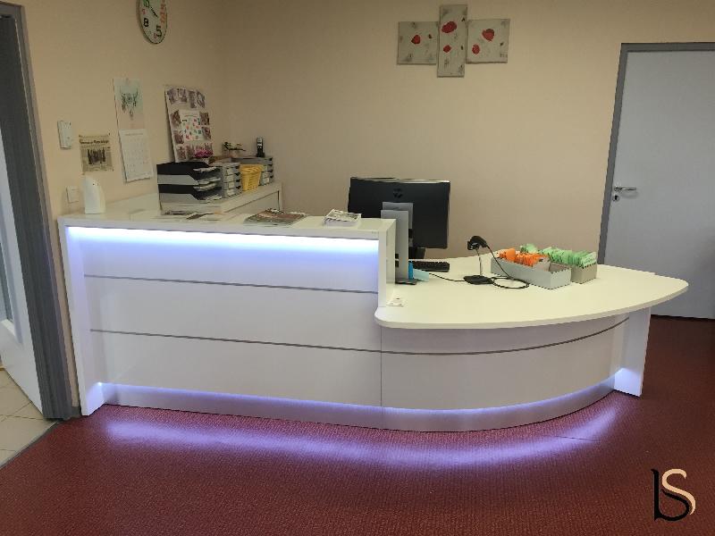 Des lignes pures et un caractère dynamique pour cette banque d'accueil lumineuse Valde.