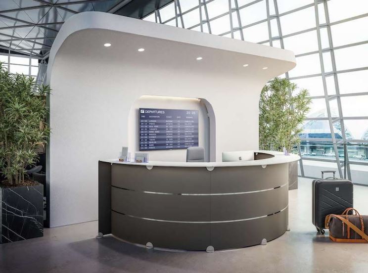 Banque d'accueil moderne et fonctionnelle pour un espace professionnel accueillant