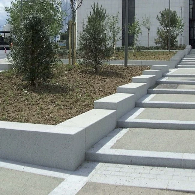 Une banquette en bton pleine masse.