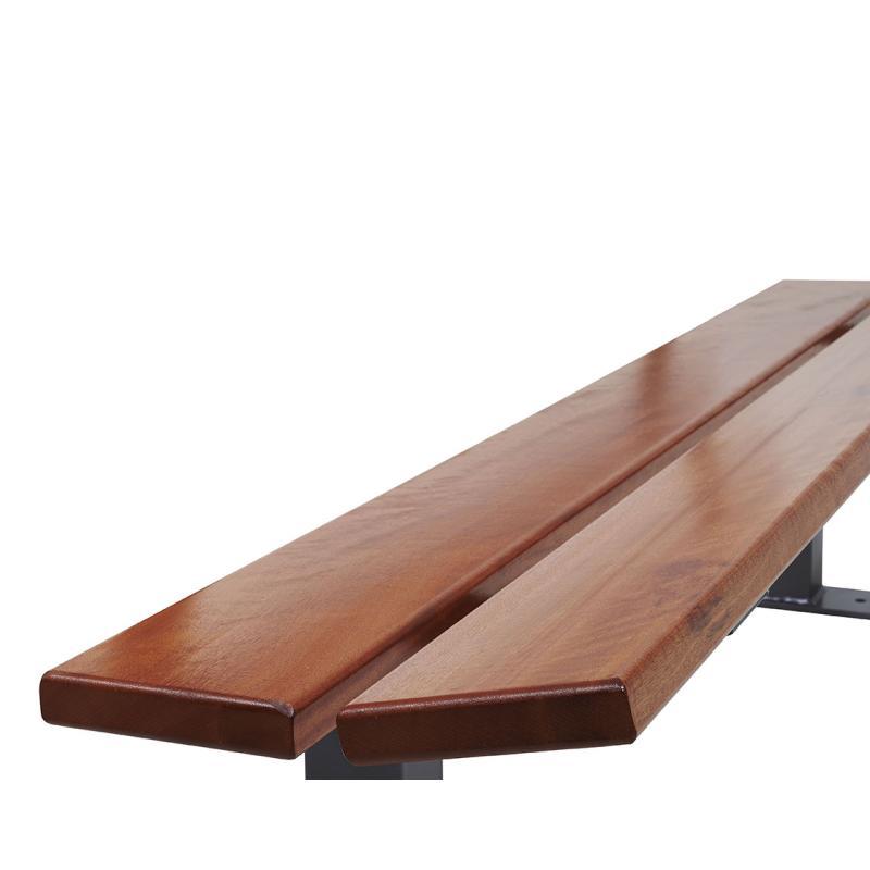 BANC PAGODE - Longueur : 2000 mm - Structure : acier - Assise et dossier : bois exotique (chêne clair ou acajou) - Référence : 299443 -