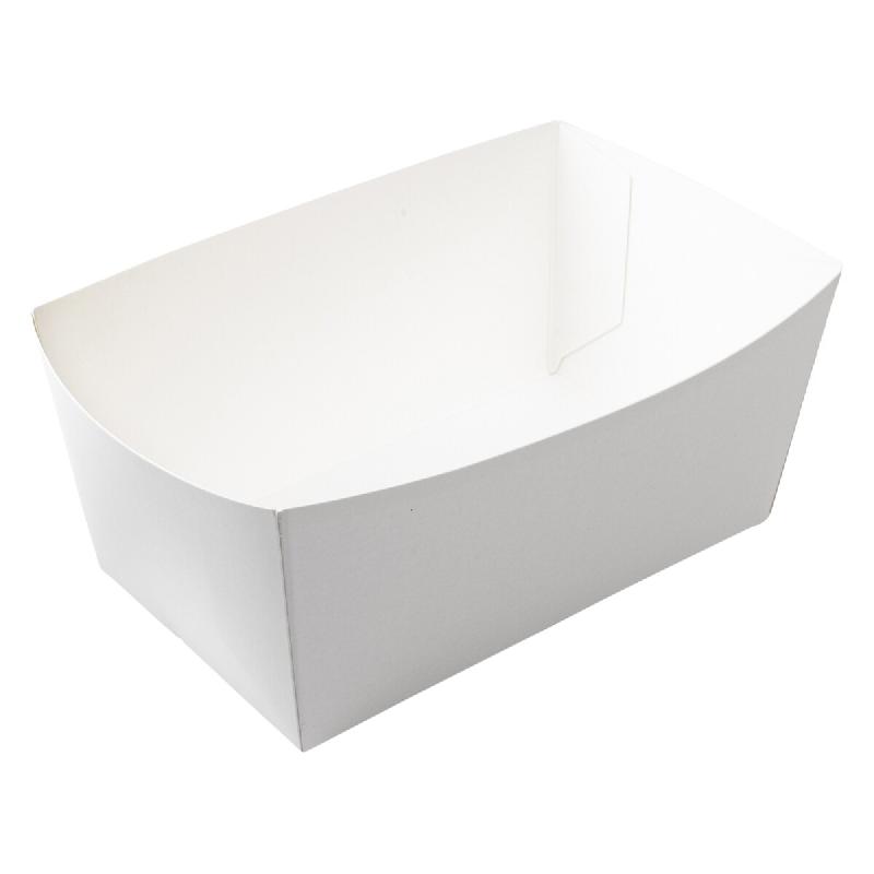 Barquette Carton NOVABOX PACK RESTAURATION Blanche 750g - 230x70x40mm - 270g/m² - Format Traiteur Spécial Plats Longs et Fritures - Ingraissable - b