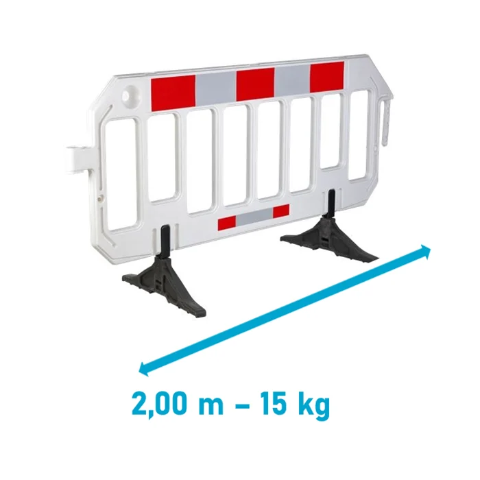 . Les larges pieds de cette barrière sont conçus pour assurer une stabilité maximale