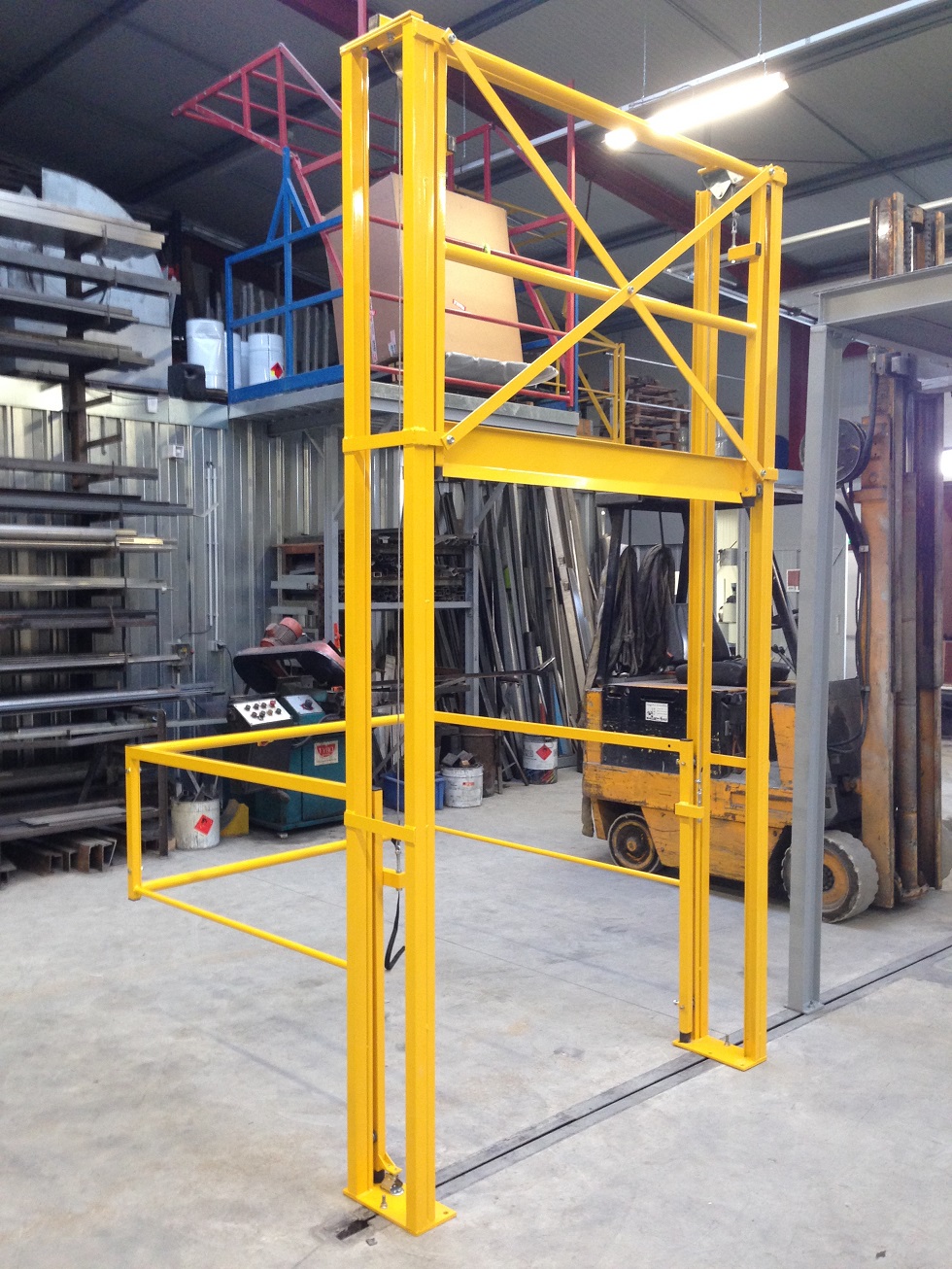 La barrière écluse permet le chargement de la marchandise sur la mezzanine tout en assurant la continuité de la rambarde. - Elle évite les chutes de marchandises en bord de plate - forme et sécurise le personnel.