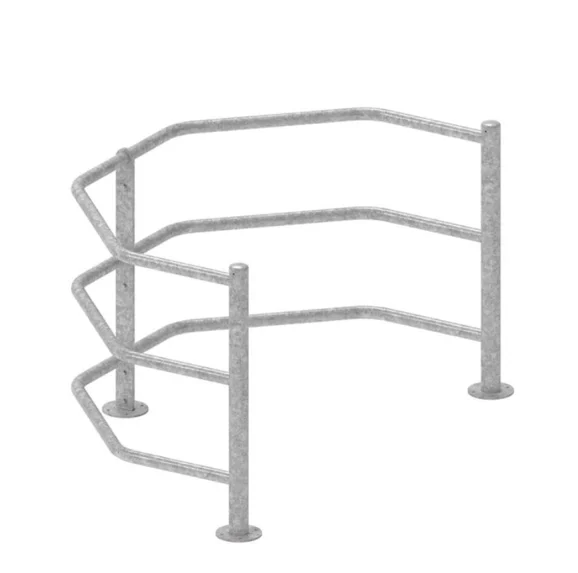Interdit l'accès des véhicules motorisés aux parcs publics tout en acceptant le passage de tous types de fauteuils roulants, en conformité avec les réglementations en vigueur. - Structure : Ensemble en tube acier comprenant un élément rotatif et un élément fixe. - Pivot : Assuré par un t