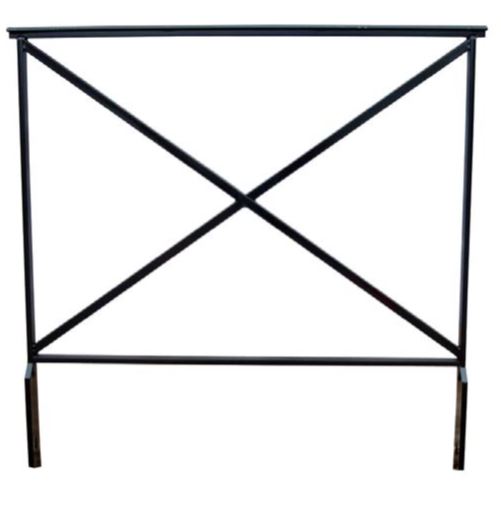 Structure : en acier massif finition sablage, polyzinc et thermolaquage coloris noir RAL 9005 avec piétement double renforcé. - Main courante moulurée 40 x 10 mm - Montant fer plat 30 x 12 mm - Longueur : 500 mm - Croix en carré plein 18 x 18 mm - Hauteur après scellement : 850 mm - A sce