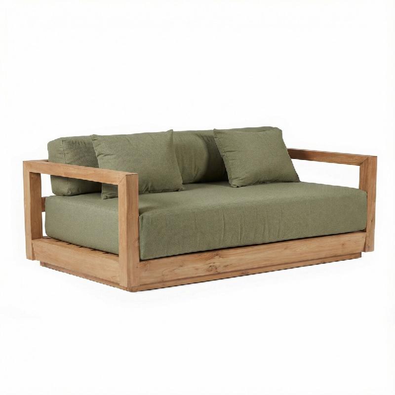 Les espaces calmes naissent souvent de formes simples et de matériaux sincères. Le canapé Umalas deux places transpose cette sensibilité à l'extérieur, où un canapé en bois encadre les moments de repos et de connexion.