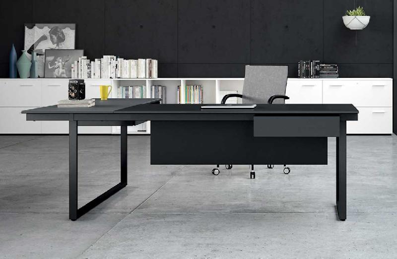 Bureau individuel Elvira avec retour. Dimensions 140/160/180 x 80 cm. Retour secrétaire 100/120 x 60 cm. Top access en option. Plateau mélaminé 30 mm. Garantie 5 ans. - Marque : Bulmin