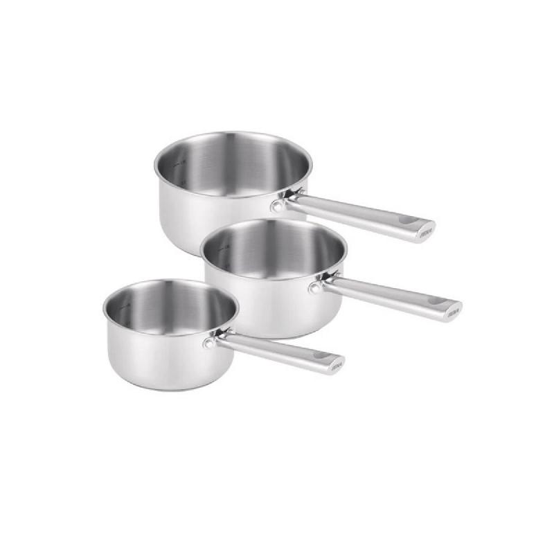Acier inoxydable 18/10 - Forme droite - Couvercles assortis vendus séparément - Manche riveté en inox massif - Tous feux dont induction - Diamètre : 16 / 18 / 20 cm - Capacité : 1,7 / 2,4 / 3,3 L - Intérieur de la casserole gradué - Compatible lave vaisselle - Marque : BEKA - Délai