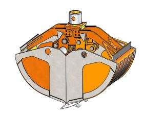 KB Benne de reprise - Présenté ici est une benne preneuse de Terrassement et de Reprise. - Utilisée communément sur des camions grues et les pelleteuses, cette benne est considérée comme un équipement interchangeable, conformément à la directive pour les machines 2006/42/CE, annexe II, pa