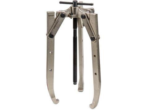 À trois bras · Avec crochets d'extraction d'une seule pièce, coulissantes et toujours parallèles · Traverse avec ressort de retenue pour éviter tout glissement involontaire des crochets · Tête de broche avec collerette pour éviter de glisser avec la clé plate · Pointe de centrage à rotat