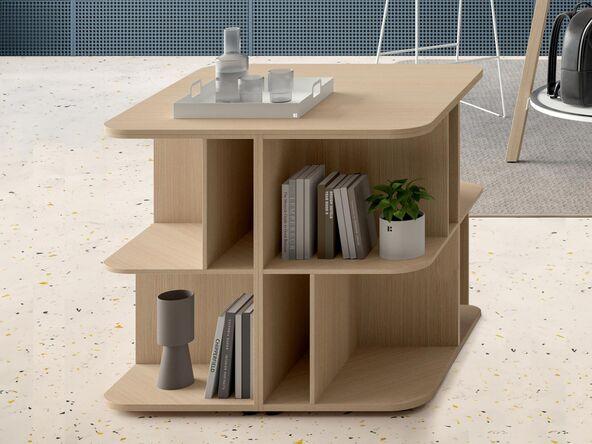 Bibliothèque basse ouverte Giorno avec espace de consultation