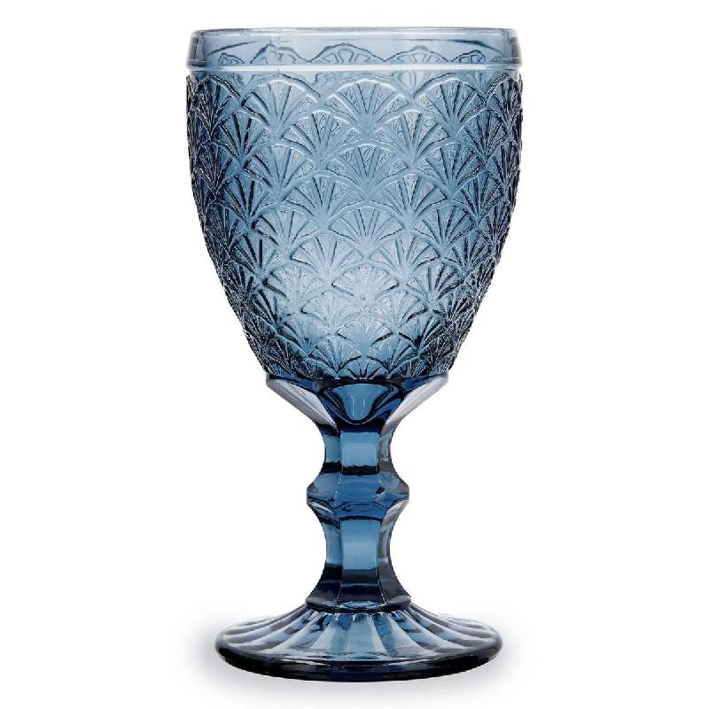Plongez dans l'élégance raffinée avec le verre à pied bullé de 28 cl Luberon en verre bleu de Table Passion. Chaque verre à pied, méticuleusement conçu avec des bulles délicates, est une Å“uvre artisanale qui apporte une touche artistique à vos moments de dégustation. - Avec une capacitÃ