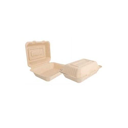 Boîte à hamburger en canne à sucre 15x15cm 50un Boîte à hamburger - Convient aux micro - ondes et aux fours. - Permet de cuire des aliments à des températures allant jusqu'à 100 degrés et pendant 30 minutes d'utilisation. - Matériau compostable et biodégradable, 99 % de fibres de canne