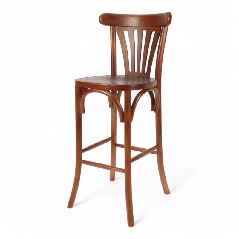 La chaise de bar HALLES - bois Naturel est le modèle traditionnel des brasseries et cafés parisiens. Cette chaise de style Thonet est entièrement bâtie en bois d'orme. La patine du bois est foncée, renforçant ainsi le côté rétro. Le dossier, ajouré, est légèrement courbé offrant un bon