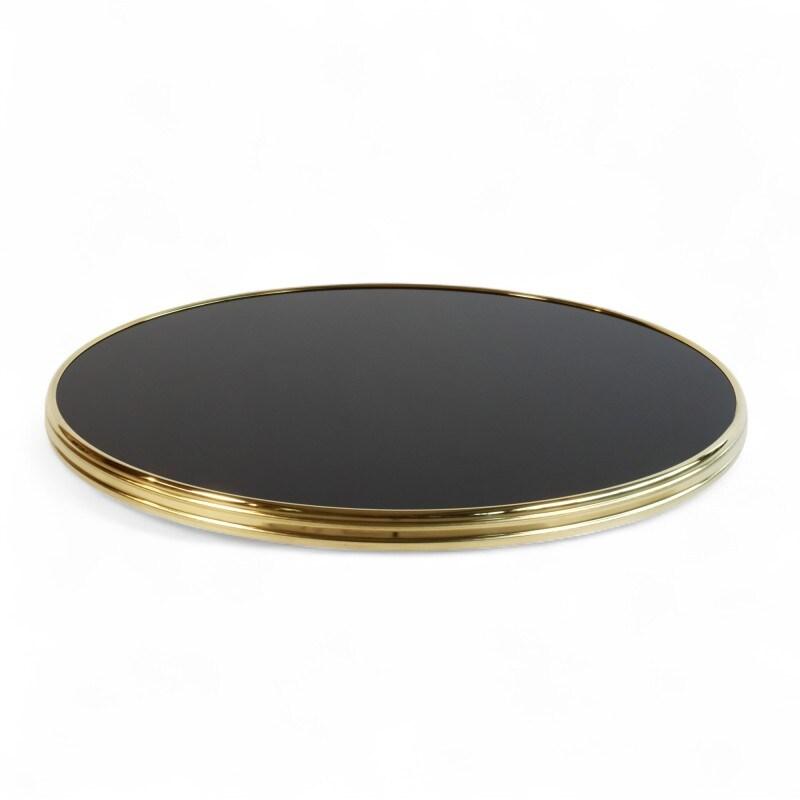 Bistromania Plateau de table VENDÔME Rond - Noir Brillant - Cerclage laiton mouluré D60 cm - N005-CERLAITONCER-BRI-MOUL