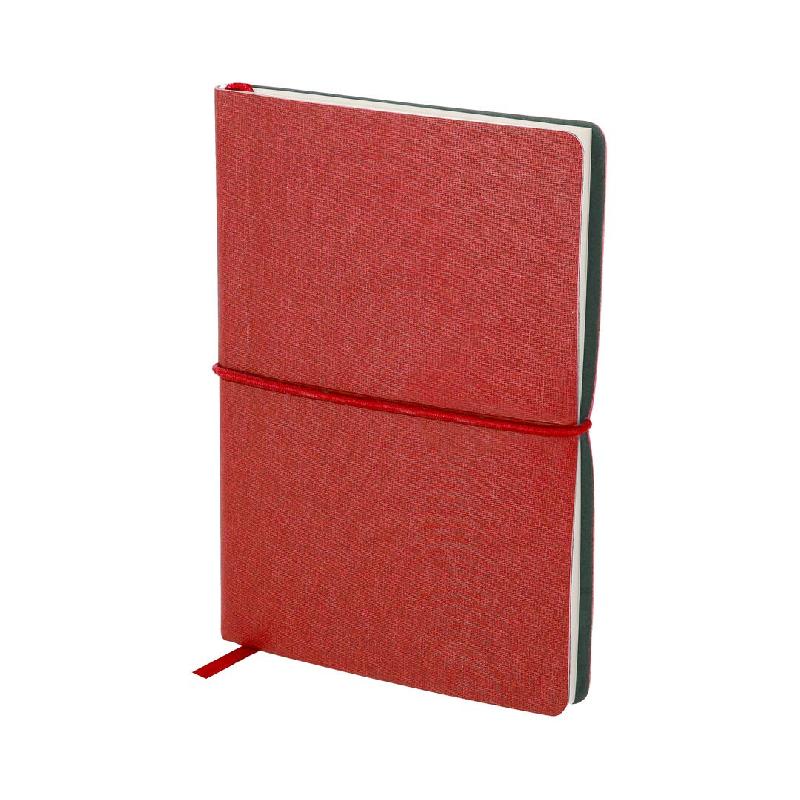 Bloc - notes, avec couvertures au toucher doux en finition cuir souple et stylo assorti. Avec 100 feuilles lisses, fermeture élastique et marque - pages en tissu assortis. Présentation dans une élégante boîte en carton blanc. Stylo avec encre bleue. 24 x 2,2 x 19,7 cm | 380 g. - Prix de livrai