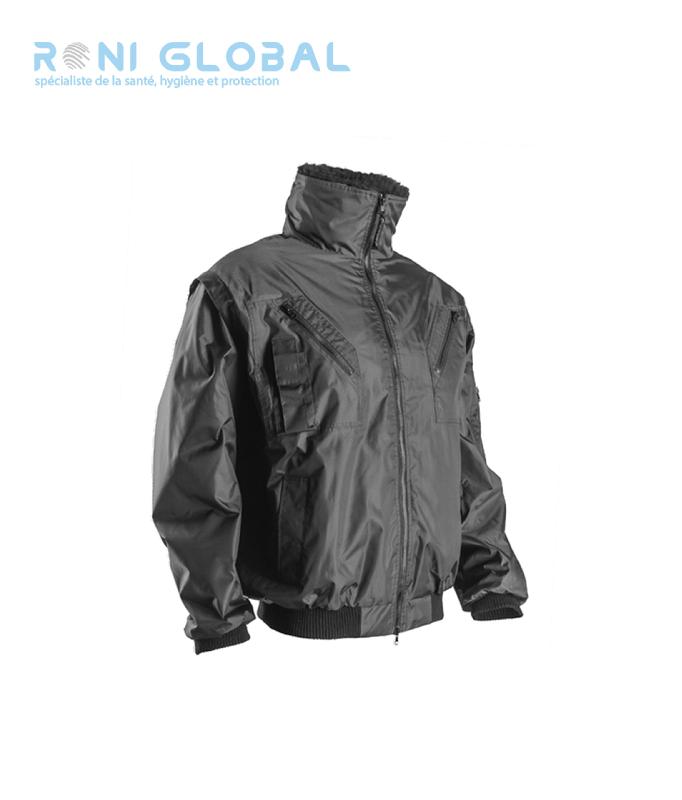 blouson en tissu oxford polyester enduit pu. col droit double polaire. capuche dans le col. doublure matelassee. manches amovibles. renforts de protection sur les epaules. poignets demi - elastiques reglables. elastique de serrage a la taille. patchs reflechissants. trappe de serigraphie. coloris :
