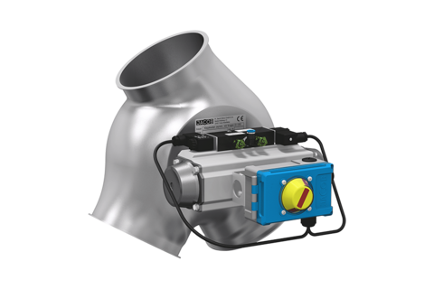 Boîte à clapet asymétrique avec collet et vérin rotatif pneumatique - électrovanne à impulsion 5/2 voies, diamètre 100-400 mm