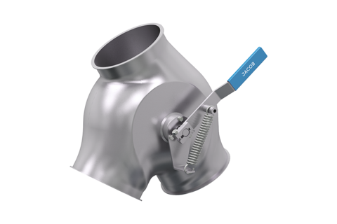 Boîte à clapet avec collet asymétrique - commande manuelle - Montage à droite - Diamètres 100-400mm - Revêtement pulvérisation & acier inoxydable - Distributeur 2 voies JACOB