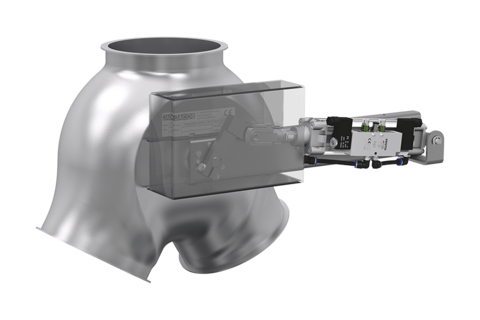 Boîte à clapet avec collet - symétrique - vérin linéaire - électrovanne à impulsion 5/2 voies - 2 fins de course magnétiques