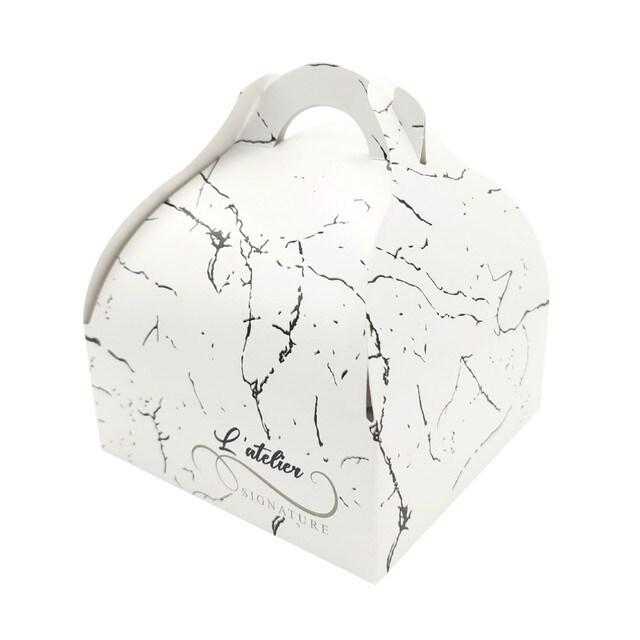 Boîte patissière décor Atelier Signature à poignée 135x135x60mm par 400 pièces JORIDEAL - blanc en carton 3519400541367