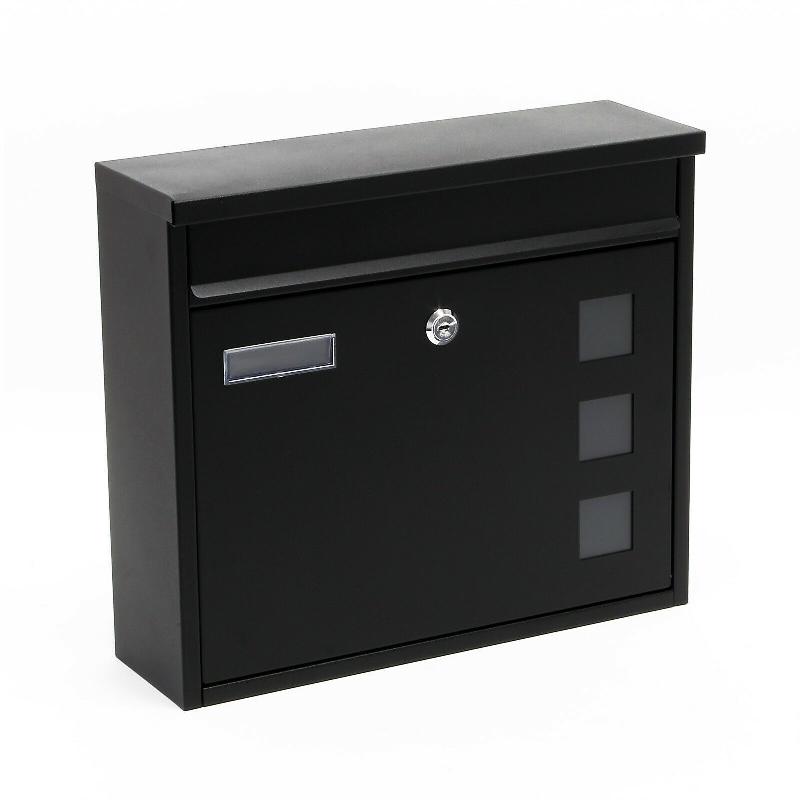 Boîte postale murale design en acier galvanisé - revêtement par poudre - 360 × 320 × 115 mm - noir - 16_0000105