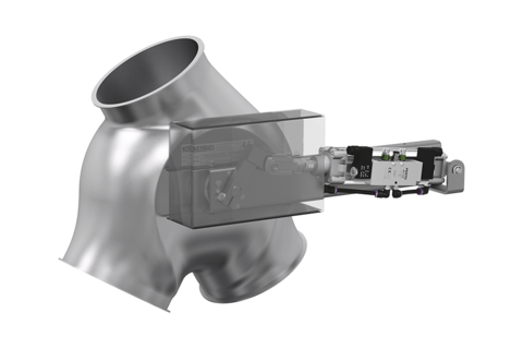 Boîtes à clapet avec collet, asymétrique - Vérin linéaire - Commande électrovanne - Diamètre 100 à 400 mm