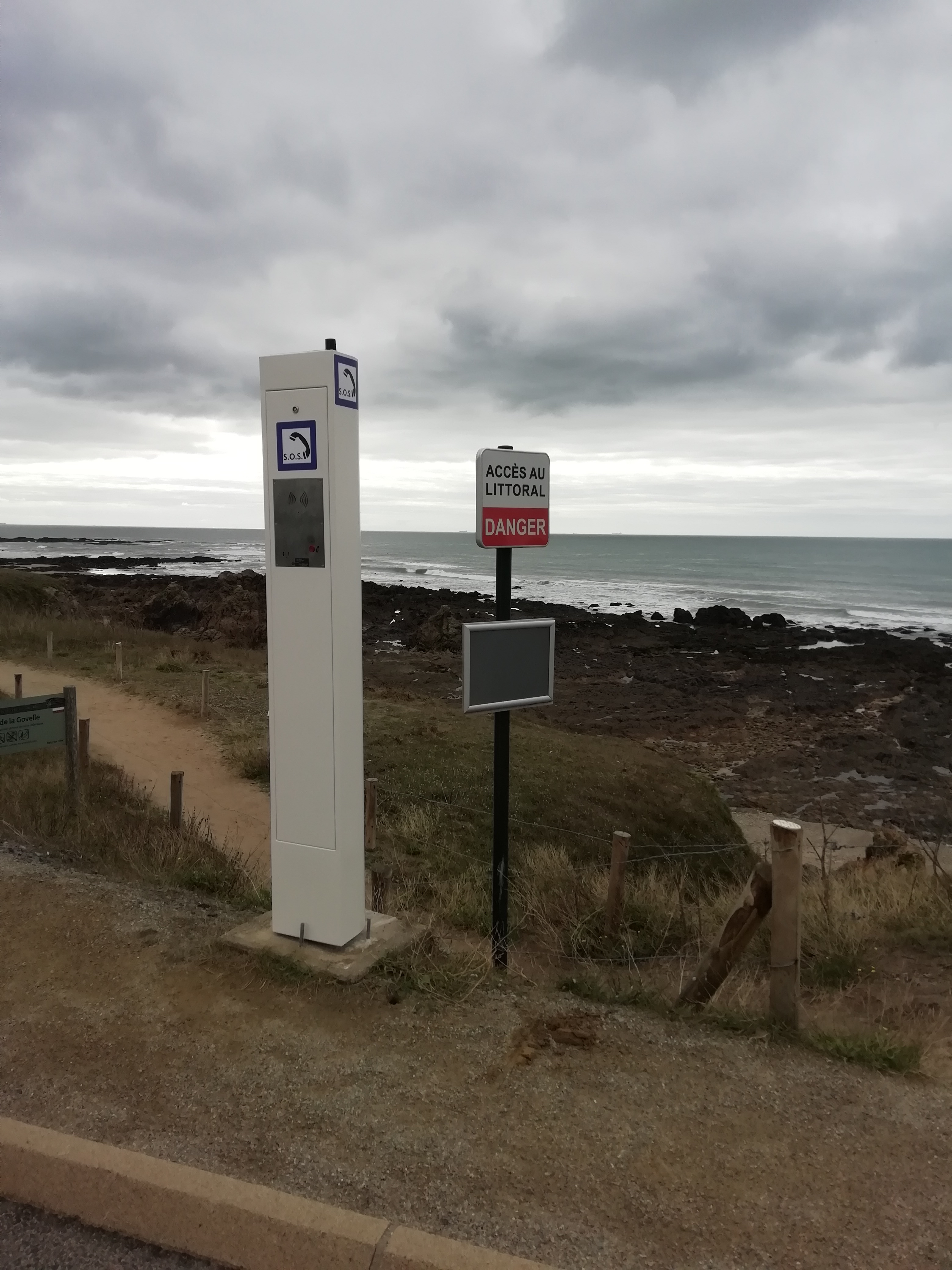 Borne d'appel d'urgence avec détecteur de présence - Diffuse un message de prévention au passage de l'usager en fonction des horaire de marée