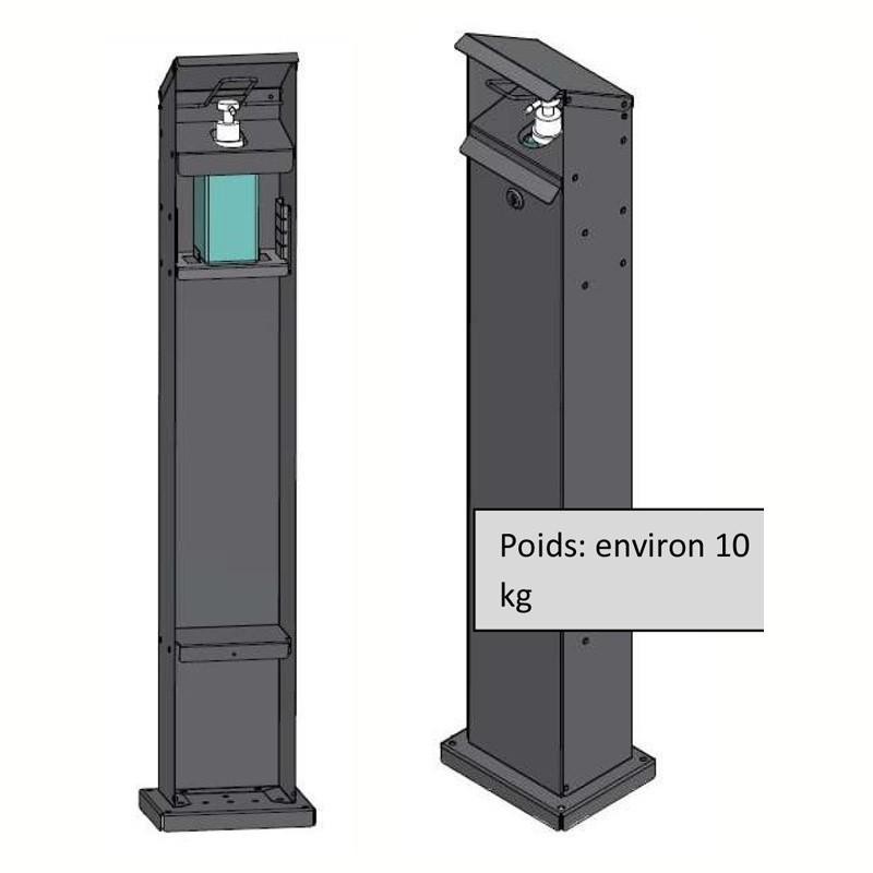 Borne distributrice de gel hydroalcoolique sans poubelle - Acier galvanisé ou inoxydable - Bouteilles jusqu'à 1L