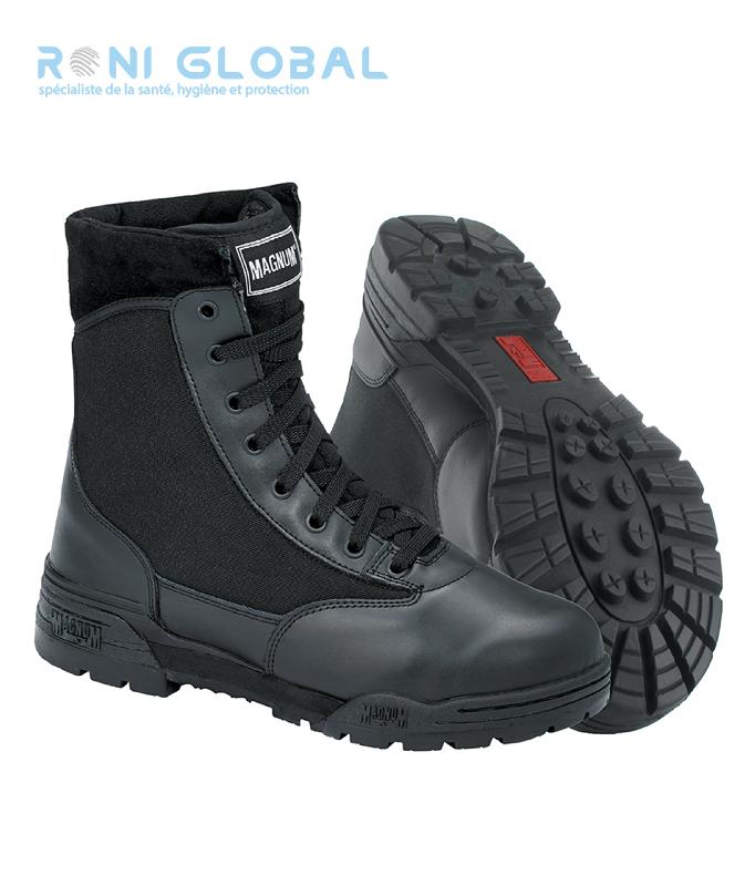 Botte en cuir Œillets traités antirouille - MAGNUM CLASSIQUE CITY GUARD Référence : city - 1712 - Matériaux : Cuir et toile 1150 deniers - Œillets : Traités antirouille - Collier : Cuir suédé, doublé mousse - Cambrion : Anti - torsion acier - Semelle extérieure : Gomme carbone rési