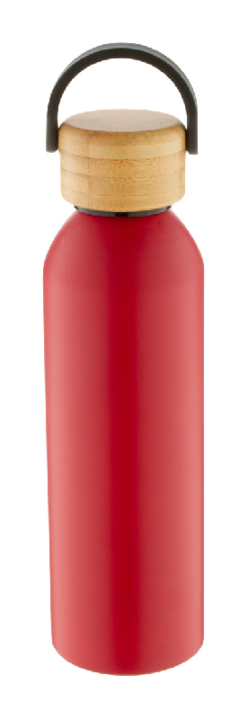 Bouteille en aluminium - 600 ml - Couvercle en bambou - Couleur rouge