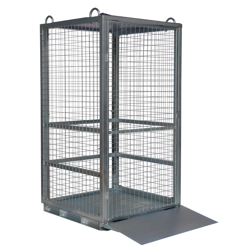 Box de Stockage Sécurisé pour Bouteilles de Gaz - Acier Galvanisé RésistantConçu pour répondre aux besoins des environnements industriels exigeants tels que les chantiers de construction, les sites miniers ou les zones de stockage réglementé, ce box de rangement pour bouteilles de gaz allie sécurité, robustesse et praticité.Fabriqué en acier galvanisé de haute qualité, il assure une protection optimale contre la corrosion et les conditions climatiques extrêmes. Sa structure entièrement mécano-soudée garantit une solidité exceptionnelle, même en usage intensif.Caractéristiques Techniques Compatibilité chantier et usage industriel : idéal pour le stockage conforme des bouteilles de gaz sur site. Transport facilité : équipé de poches pour fourches en partie basse et de crochets de levage pour grue sur le dessus. Sécurité renforcée : une porte battante verrouillable par loquet sécurise l'accès au contenu. Protection contre les intempéries : toit intégralement en métal pour une étanchéité parfaite. Finition galvanisée : traitement anticorrosion longue durée pour une durabilité optimale.Points Forts Présence de passages de fourche pour une manutention rapide et stable Structure mécano-soudée ultra-résistante pour une meilleure longévité 4 anneaux d'arrimage supérieurs pour levage sécurisé et facilité de transport Conçu pour le stockage réglementé des bouteilles de gaz Charge maximale : 750 kgN'hésitez pas à découvrir nos autres équipements de stockage : benne, bac de stockage plastique, caisse palette plastique, IBC et cube cubitainer, ou encore bidons de sécurité.