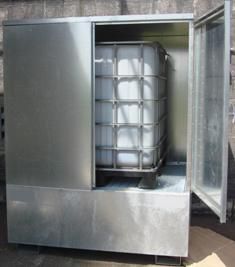 Box de stockage sur rétention en acier galvanisé - pour cubitainer ou fûts - 1000L - avec portes et serrure