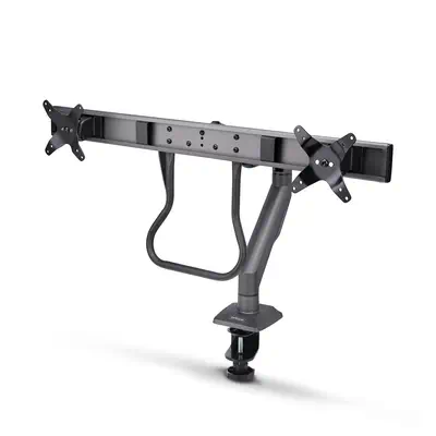 Découvrez un support de bureau robuste conçu pour accueillir deux moniteurs jusqu'à 49 pouces, optimisant ainsi votre espace de travail pour un affichage élargi et efficace. - Capacité de poids : Supporte jusqu'à 16 kg par écran, offrant une solution stable pour des moniteurs lourds. -