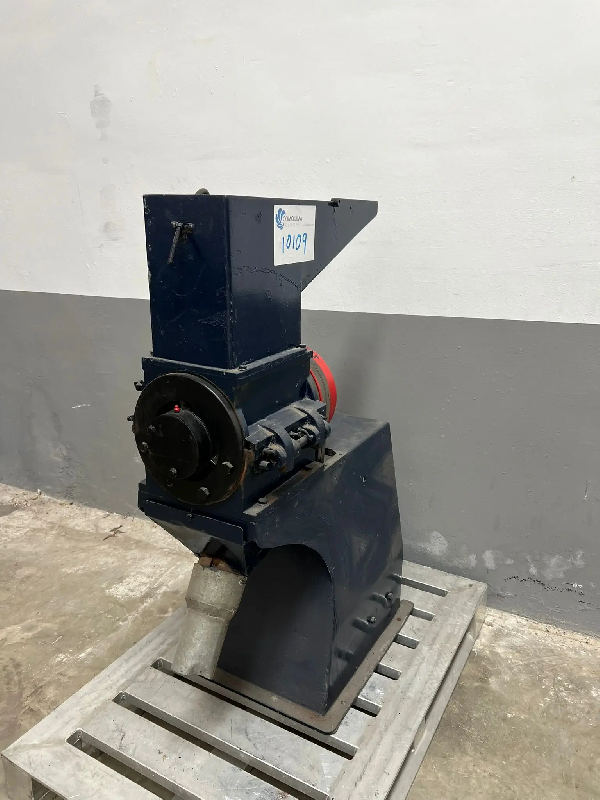 Broyeur à couteaux fabriqué par MATEU & SOLE avec une puissance de 3 CV.Longueur du tamis : 250 mmVitesse du moteur : 1420 tr/minVitesse maximale du broyeur : 700 tr/min