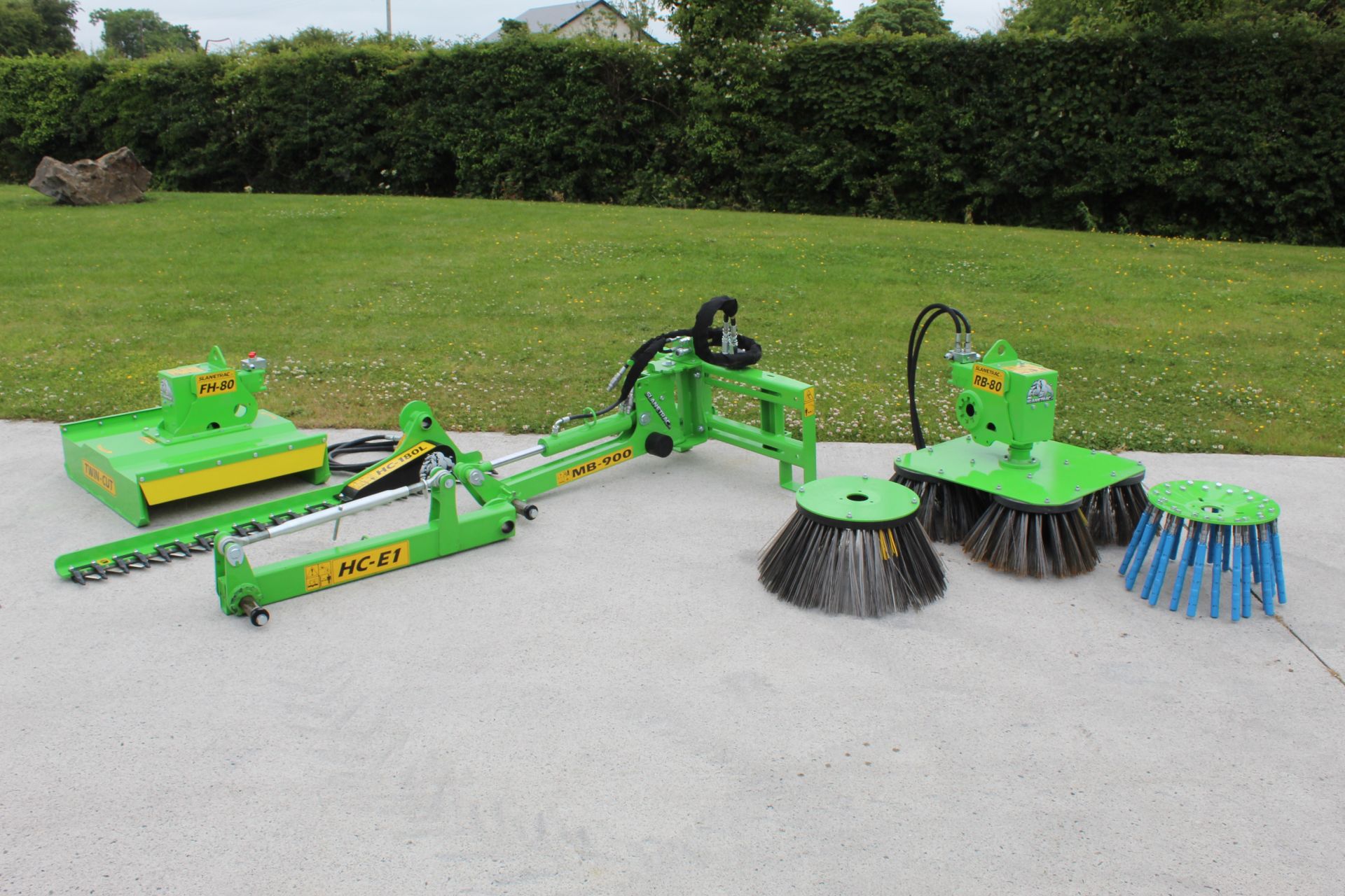 Le broyeur MB900 est un bâti de chargeuse pour lequel on peut rapidement changer toutes les gammes d'outils Slanetrac : Gyro broyeur, Taille haie, Brosse de désherbage et Scie d’élagage.