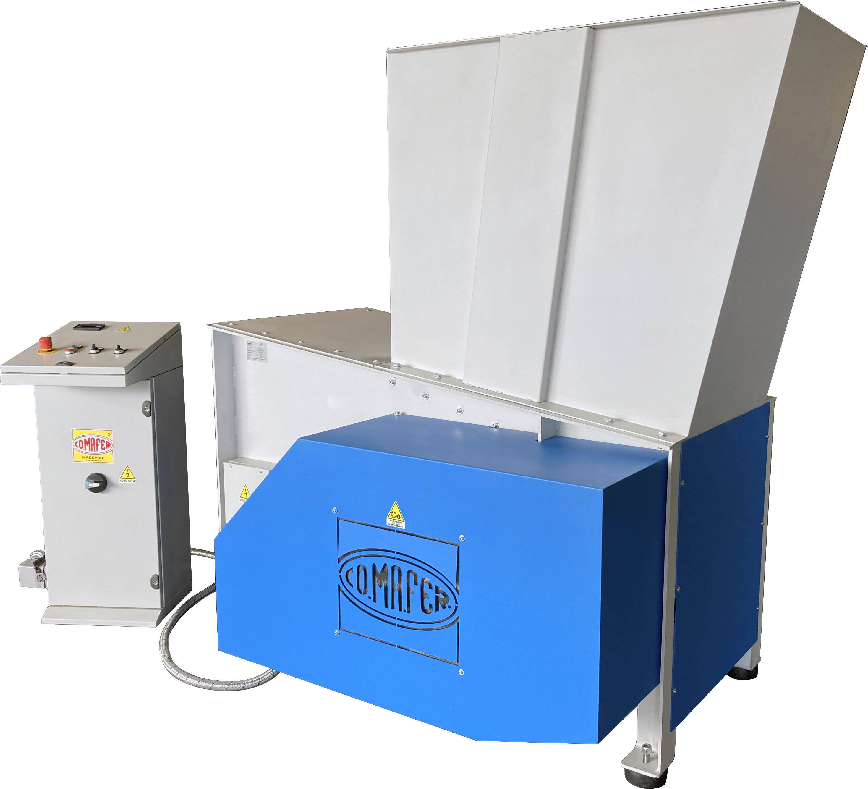 Le broyeur est caractérisé par une série de couteaux montés sur deux arbres parallèles avec sens de rotation inverse. - Il s'arrête automatiquement lors de la présence de pièces. Dans le modèle à extraction, les pièces sont sorties automatiquement. - Le broyage est souhaitable : - Pour