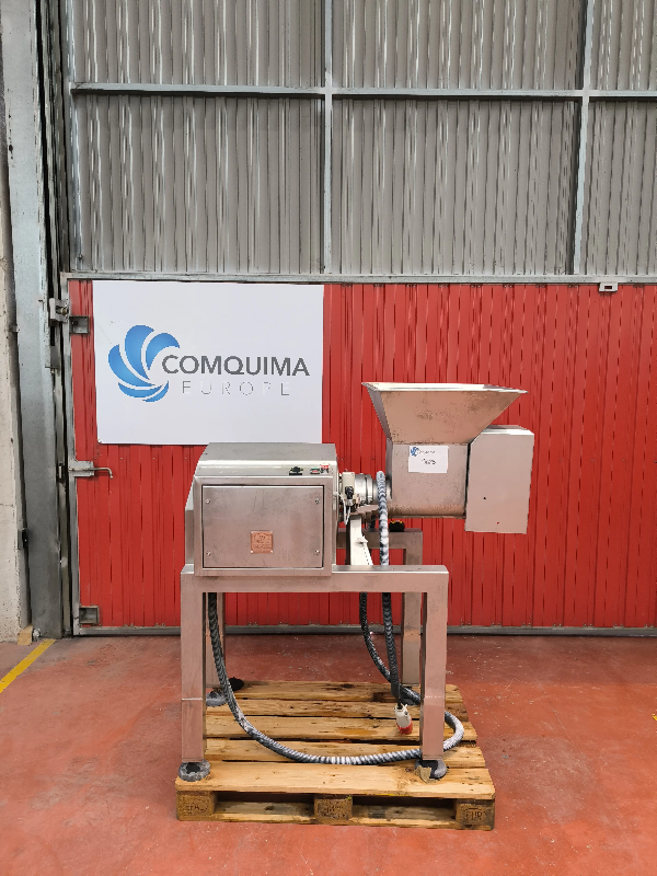 Capacité : 4000 kg / heure suivant fruits - Équipements : - Version inox sur pied permettant le broyage de fruits à pépins et noyaux suivant tamis utilisé - Moteur 5,5 kW 380 volts - Ouverture rapide pour lavage et changement de tamis - Tamis inox coupants perforés interchangeables suivan
