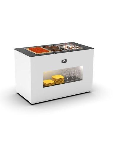 Buffet modulaire chauffant SAYL - 3 bacs GN 1/1 La ligne de buffets modulaires SAYL répond aux besoins de présentation et de conservation à température des préparations culinaires et boissons. Alliant design élégant et modularité, elle est idéale pour les hôtels, restaurants et traiteurs