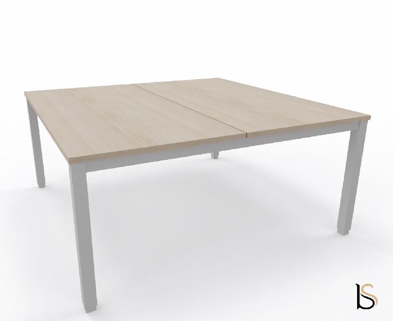 Bureau 2 personnes Tempo avec passe-câbles - Mobel Linea - 120, Alu, Acacia clair -