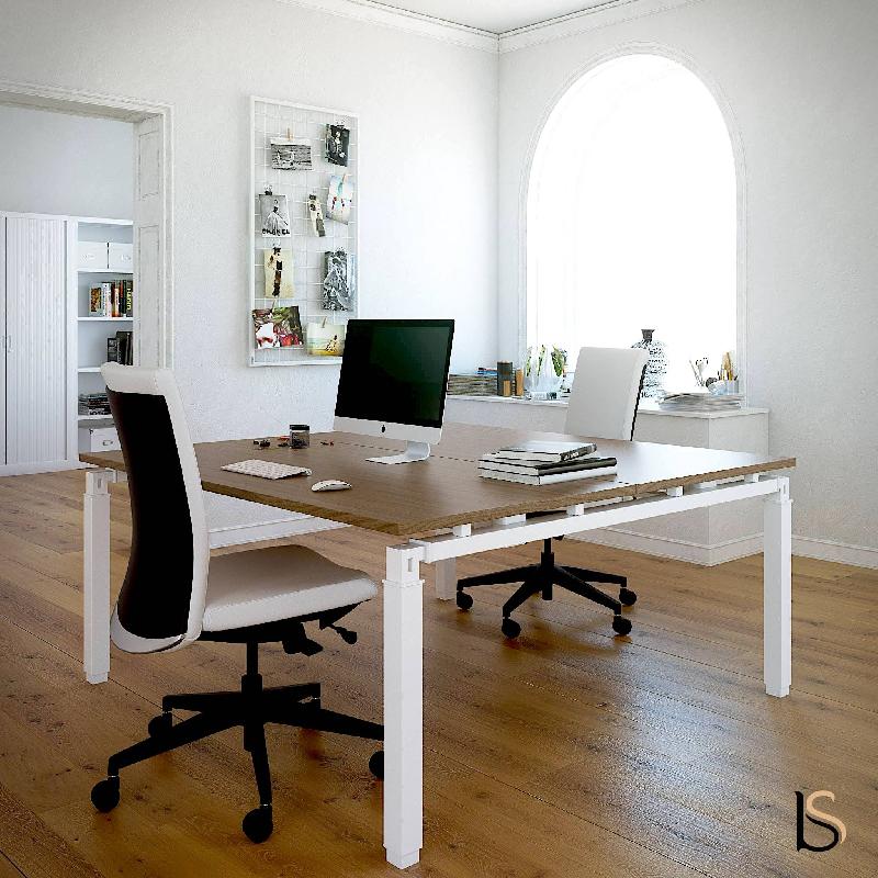 Le bureau bench 2 personnes de la collection Rock offre une structure en métal originale recouvert d'une peinture époxy coloris blanc.