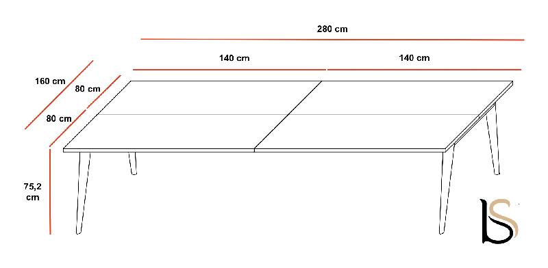 - Longueur 280 cm, Profondeur: 160 cm, Hauteur 75,2 cm