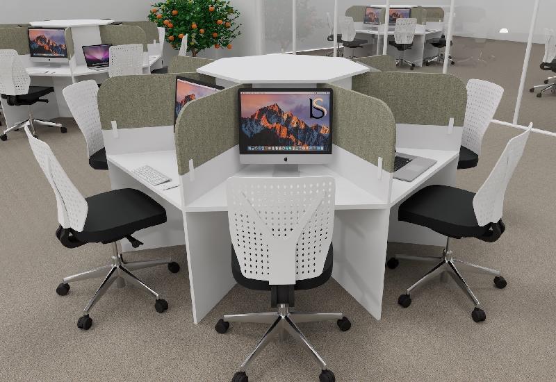 Sa forme en marguerite vous offrira un espace de travail performant tout en étant compact, permettant ainsi l'optimisation de votre salle de travail.