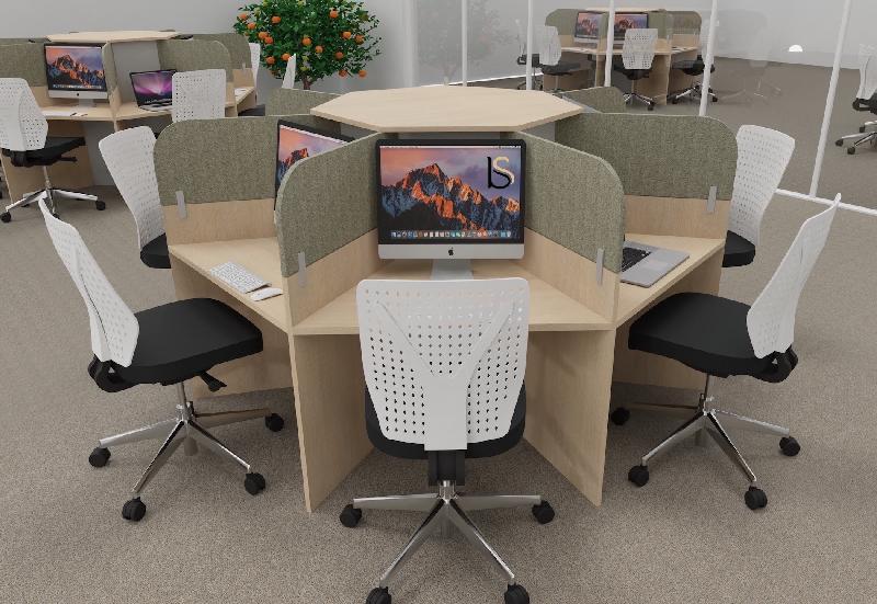 TREFLE call center centre d'appel en étoile - Optimisation de l'espace avec les bureaux marguerite - Le centre d'appel marguerite permet d'optimiser l'espace. Les opérateurs ont besoin d'un espace réduit pour travailler et c'est pour cela que les multipostes en étoile répondent parfaitement Ã