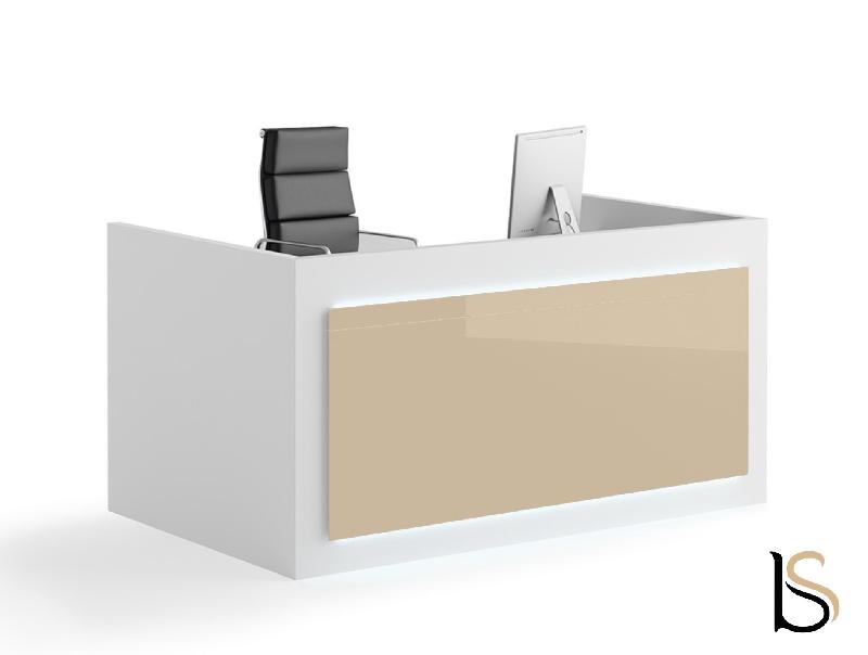 Bureau comptoir bas avant - Ofitres : accueil design - 129, Blanc, Non, Beige brillant -